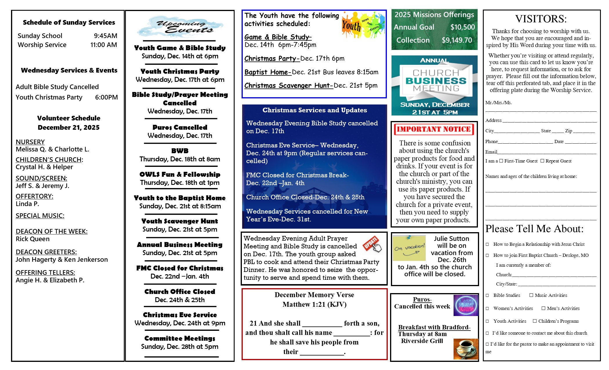 Greetings! It is great that the Lord has led you to our church’s webpage. We hope that this site will help you get acquainted with our church and who we are. However, the best way to get to know us is by being with us! Please visit us soon. Although we are theologically a conservative church, you are more than welcome to come dressed as you are. Some wear suits and some wear dresses. Others wear shorts, jeans, polos or T-shirts. Our worship language is eclectic ranging from contemporary to hymns and everything in between. Each Sunday there is a choir, praise team, and various musicians. Pastor Bradford’s sermons are preached from the English Standard Version of the Bible, are applicable to life, and are shorter than most! Utilize our media tab to get an idea of what his sermons are like.