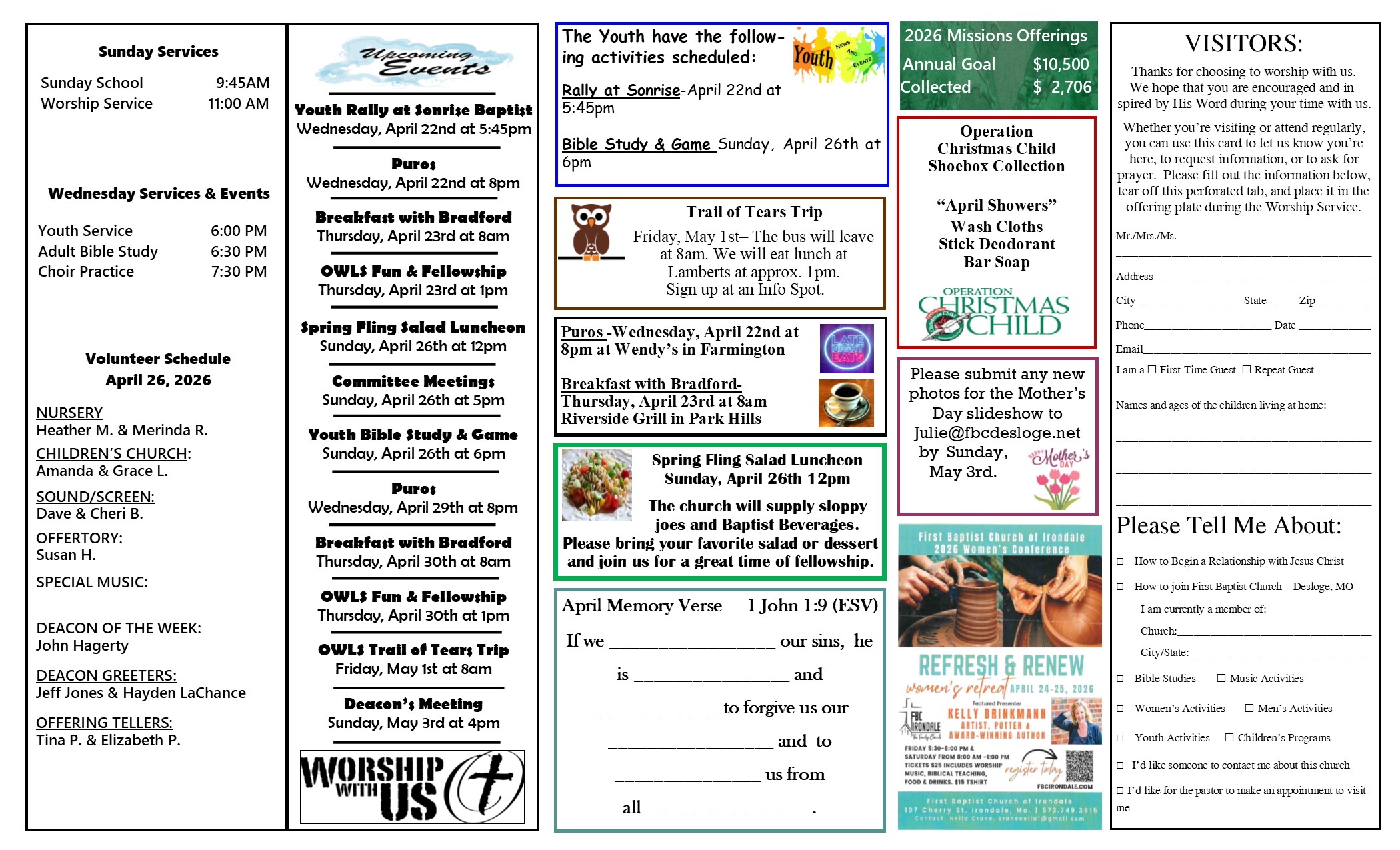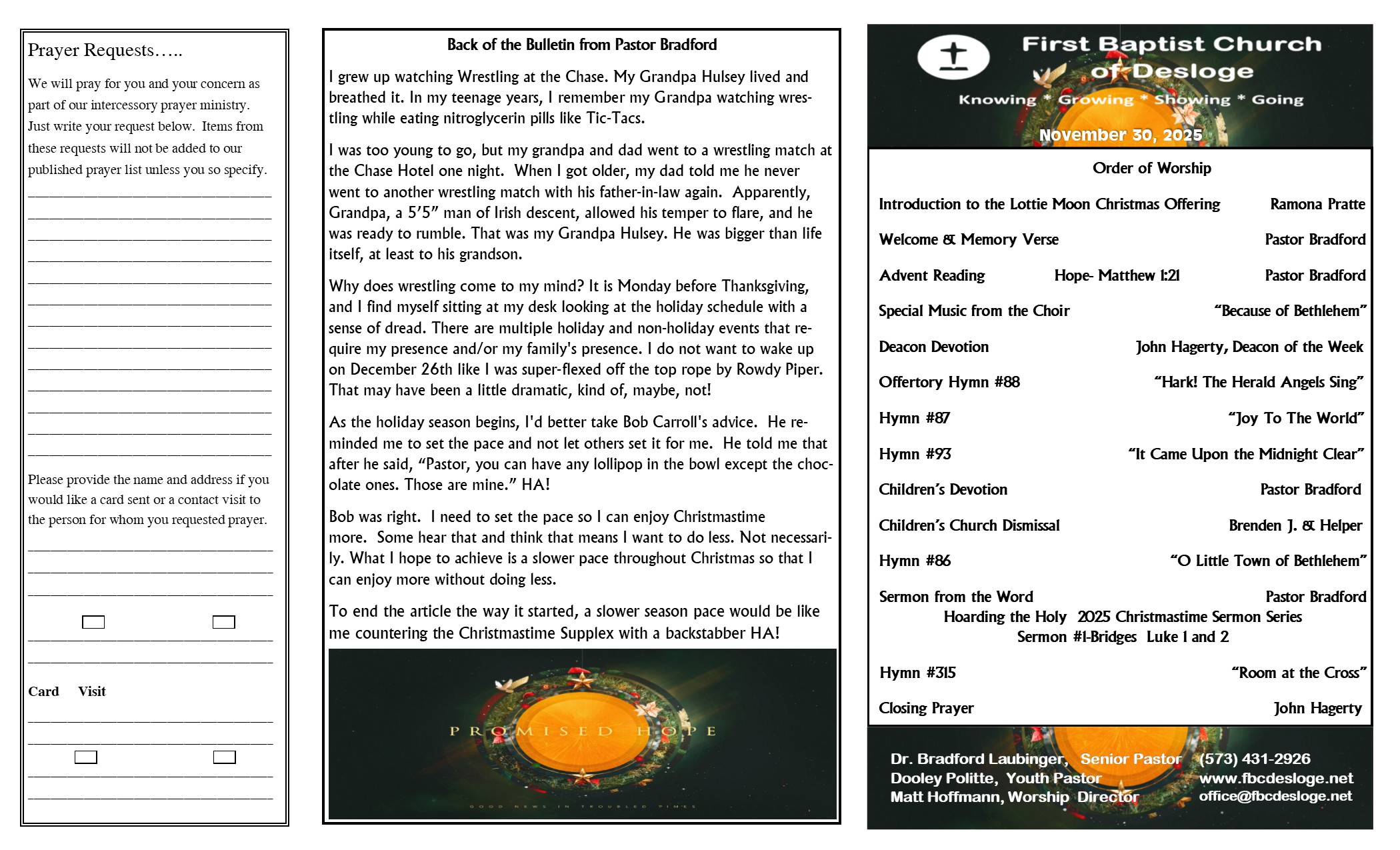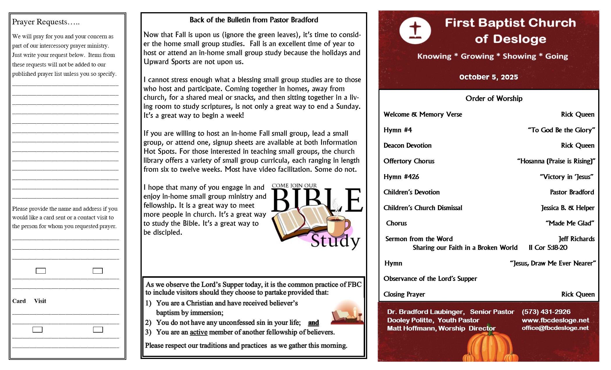 Greetings! It is great that the Lord has led you to our church’s webpage. We hope that this site will help you get acquainted with our church and who we are. However, the best way to get to know us is by being with us! Please visit us soon. Although we are theologically a conservative church, you are more than welcome to come dressed as you are. Some wear suits and some wear dresses. Others wear shorts, jeans, polos or T-shirts. Our worship language is eclectic ranging from contemporary to hymns and everything in between. Each Sunday there is a choir, praise team, and various musicians. Pastor Bradford’s sermons are preached from the English Standard Version of the Bible, are applicable to life, and are shorter than most! Utilize our media tab to get an idea of what his sermons are like.